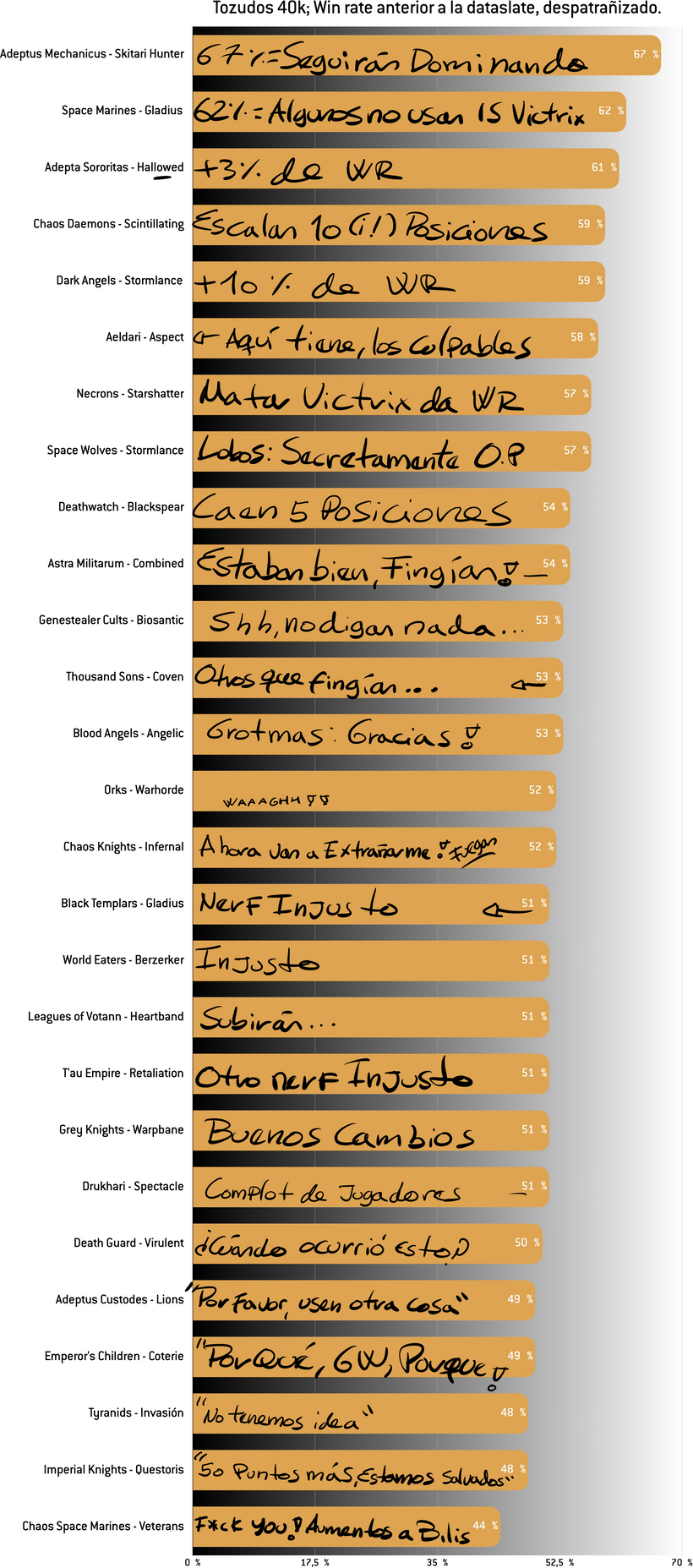 Por supuesto, este tipo de gráficos camuflan mucho de las disparidades entre facciones a través del truco de los promedios; por lo que el verdadero gráfico del último meta del 25 era este: