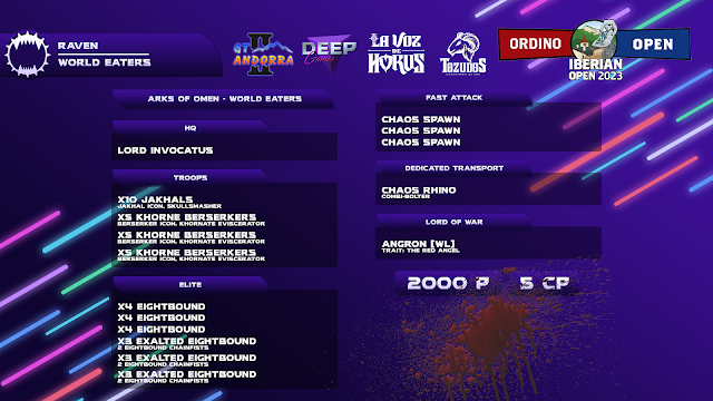 Con este path to victory, como les gusta decir a los ingleses, y más de 12 horas de partidas el domingo, Raven consiguió la victoria final en el Open de Ordino y por lo tanto el ticket dorado que le manda al Warhammer World Championship 2023 de Atlanta.
