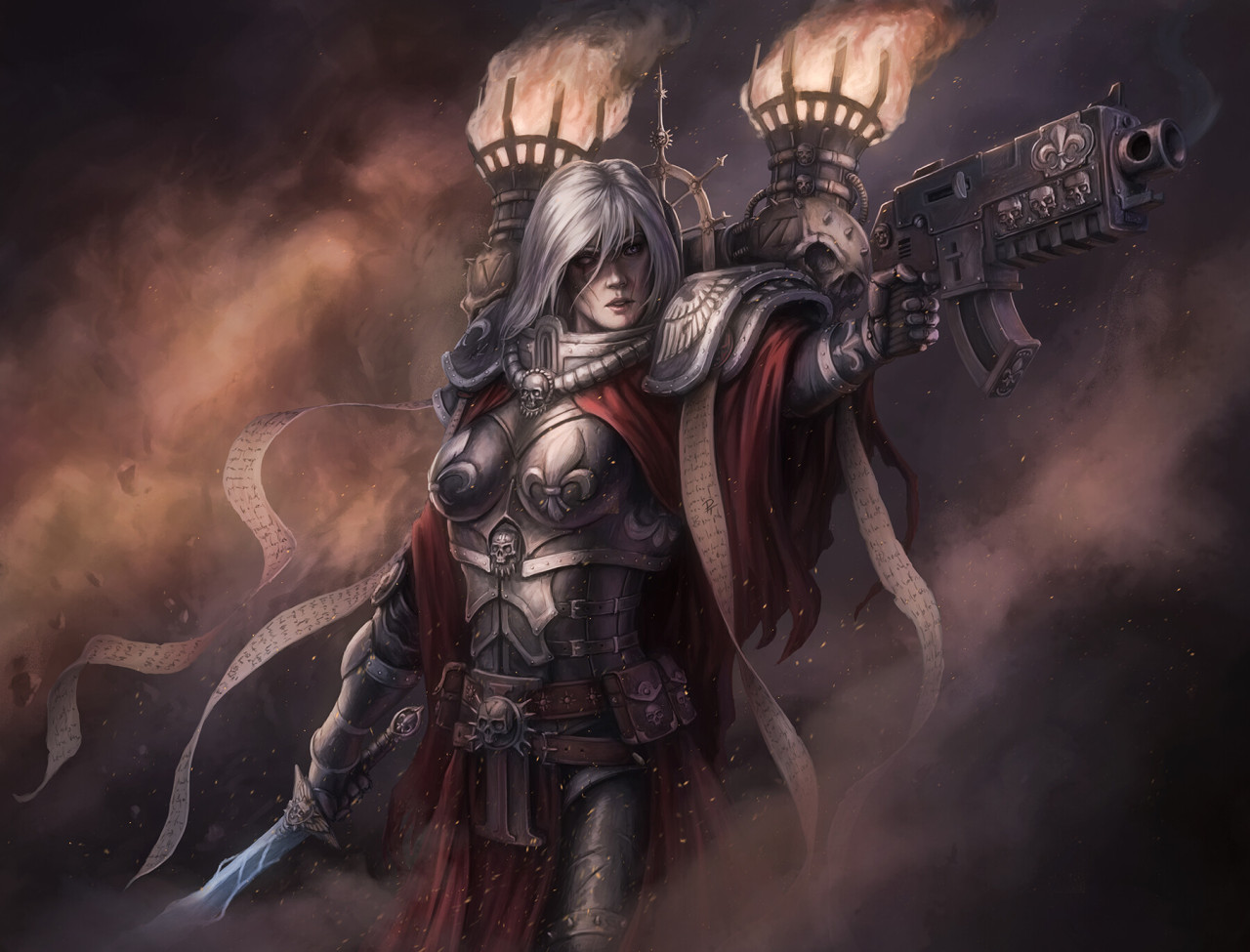 Canoness (60 points): Brazier of holy fire, Condemnor boltgun, Hallowed chainsword. Enhancement: Saintly Example