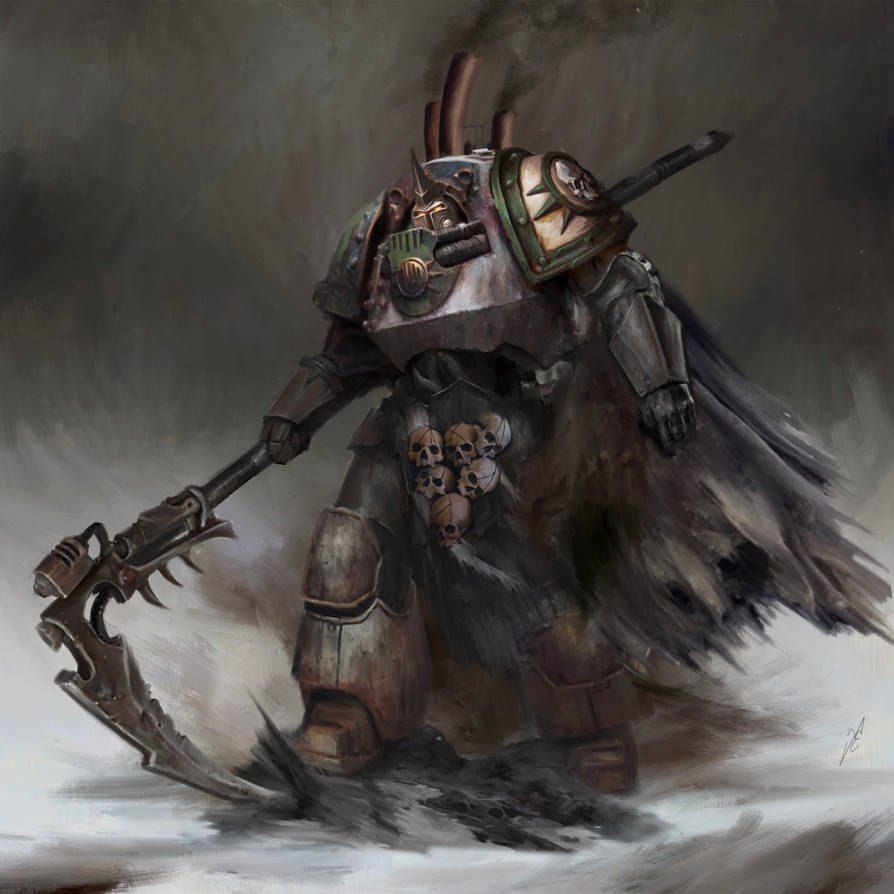 Death Guard Sorcerer in Terminator Armour (70 pts). Curse of the Leper, Plague combi-bolter, Force weapon