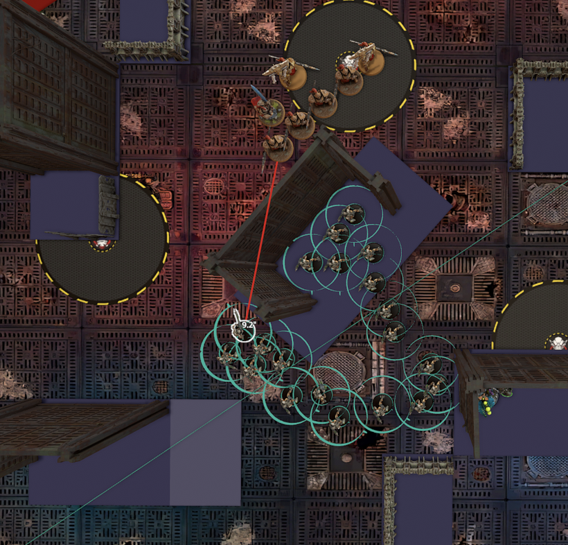 Esta parte de las nuevas reglas abre una nueva bolsa de gatos, y lo gracioso es que esta es más o menos equivalente a la bolsa que cierra. Porque claramente, un rango de amenaza de 2" está orientado a impedir que con el viejo truco de poner las minis a 1.0001 de una pared, no se las pueda cargar sin dar la vuelta, debido a que la pared tiene un cierto ancho: